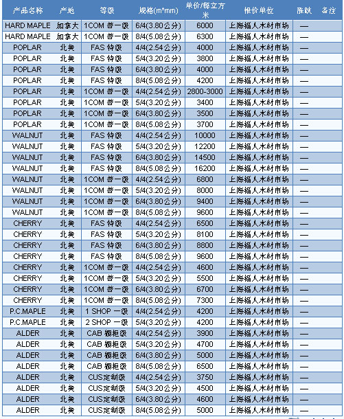 從近期的市場(chǎng)表現(xiàn)來(lái)看,北美紅橡、白栓等材種依舊是主流材種,銷(xiāo)量相對(duì)較好。目前廣東市場(chǎng)白栓長(zhǎng)2.15—3.05m、厚1—2寸、FAS級(jí)報(bào)價(jià)6000—7200元/立方米;白橡長(zhǎng)2.15—3.05m、厚1—2寸、FAS級(jí)報(bào)價(jià)8200—13000元/立方米。