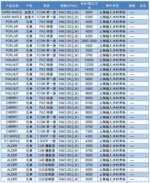 從近期的市場表現(xiàn)來看,北美紅橡、白栓等材種依舊是主流材種,銷量相對較好。目前廣東市場白栓長2.15—3.05m、厚1—2寸、FAS級報價6000—7200元/立方米;白橡長2.15—3.05m、厚1—2寸、FAS級報價8200—13000元/立方米。