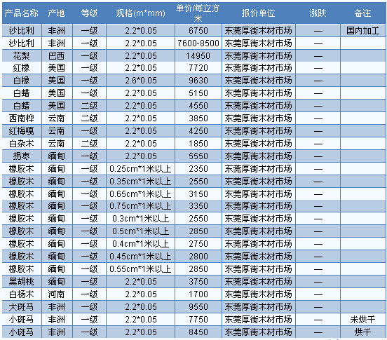 卡絲拉貨源持續(xù)緊缺。據(jù)商家反映,卡絲拉的市場(chǎng)表現(xiàn)較好,現(xiàn)階段市場(chǎng)不少商家都能接到訂單,但由于卡絲拉貨源緊缺,因此對(duì)于一些數(shù)量較大的訂單,商家都表現(xiàn)得相當(dāng)謹(jǐn)慎,接單的人不多,商家更多的是接一些需求量相對(duì)較少的單。目前廣東市場(chǎng)卡絲拉長(zhǎng)2.2—2.6m、厚5cm、A級(jí)報(bào)價(jià)4500—4600元/立方米。