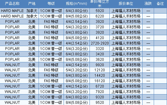 從近期的市場(chǎng)表現(xiàn)來(lái)看,北美紅橡、白栓等材種依舊是主流材種,銷量相對(duì)較好。目前廣東市場(chǎng)白栓長(zhǎng)2.15—3.05m、厚1—2寸、FAS級(jí)報(bào)價(jià)6000—7200元/立方米;白橡長(zhǎng)2.15—3.05m、厚1—2寸、FAS級(jí)報(bào)價(jià)8200—13000元/立方米。