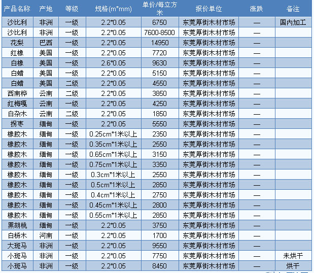 木材市場(chǎng)聯(lián)盟新動(dòng)態(tài):西南樺表現(xiàn)較好。據(jù)商家反映,西南樺的紋理漂亮,而且又可以代替拐棗、北美櫻桃,價(jià)格也較為實(shí)惠,因此受到下游不少商家的青睞。目前廣東市場(chǎng)西南樺長(zhǎng)2.2—2.6m、厚5cm、A級(jí)報(bào)價(jià)5200—5700元/立方米。