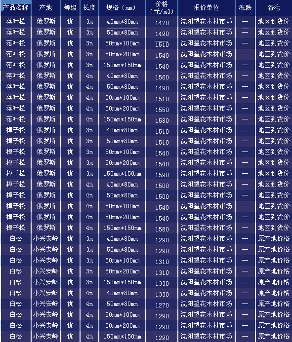 木材市場聯(lián)盟新動態(tài):最新消息顯示,在滿洲里口岸方面,樺木和樟子松價格有小幅度波動。目前滿洲里俄羅斯樟子松直徑33cm、長6m、選材報970元/立方米,直徑24cm,長6m,加工材報700元/立方米,直徑30cm、長4m、選材920元/立方米。落葉松直徑35cm、長6m、加工材報820元/立方米,選材報910元/立方米。俄羅斯紅松直徑52cm、長6m報1670元/立方米,樺木直徑30cm、長6m報950元/立方米,楊木直徑30cm、長4m報760元/立方米。