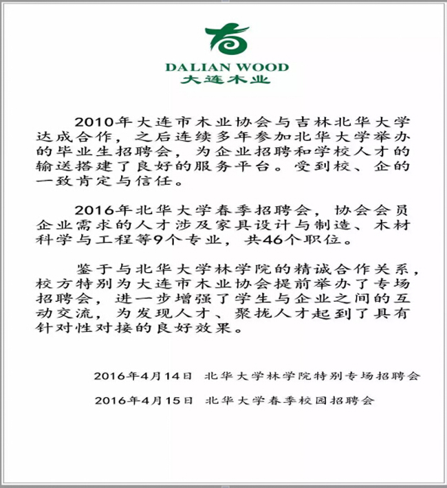 █ 大連市木業(yè)協(xié)會&北華大學(xué)(林學(xué)院)2016春季招聘會現(xiàn)場掠影