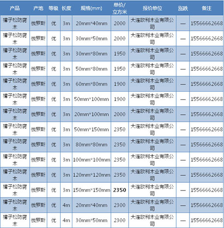 率持續(xù)下降的影響,俄羅斯木材的價格優(yōu)勢突出,國內進口量不斷增加。目前滿洲里落葉松原木直徑28cm、長6m、產地伊爾庫報860元/立方米,直徑29cm、長6m、產地克市報930元/立方米,樟子松直徑24cm、長4m、產地布拉斯克報740元/立方米。