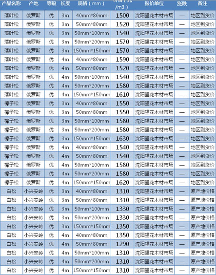 木材市場聯(lián)盟新動態(tài):近期,東北鋸材市場冷清不堪,行情弱勢整理。據(jù)商家反映,下游市場需求一片慘淡,大多數(shù)商家的庫存遲遲難以有效消耗,即使是降價出貨,尋貨問價者依然寥寥無 幾。在眾多東北材品種當(dāng)中,松木類材種走勢相對較好,特別是用于基礎(chǔ)建筑方面的材料,市場依然能維持一定的出貨量。不過有商家反映,東北松木材種使用比較 集中的地區(qū)主要在北方地區(qū),如華北、東北、西北等地區(qū),而華南地區(qū)的需求量則相對較少,原因主要是華南地區(qū)距離較為遙遠(yuǎn),運輸成本過大,導(dǎo)致東北松木缺乏 性價比。目前山東德州落葉松規(guī)格4m×6cm×12cm報價1700元/立方米。