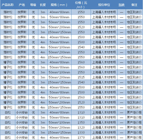 幾。在眾多東北材品種當(dāng)中,松木類材種走勢相對較好,特別是用于基礎(chǔ)建筑方面的材料,市場依然能維持一定的出貨量。不過有商家反映,東北松木材種使用比較