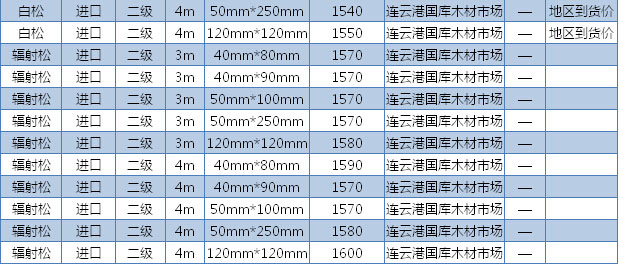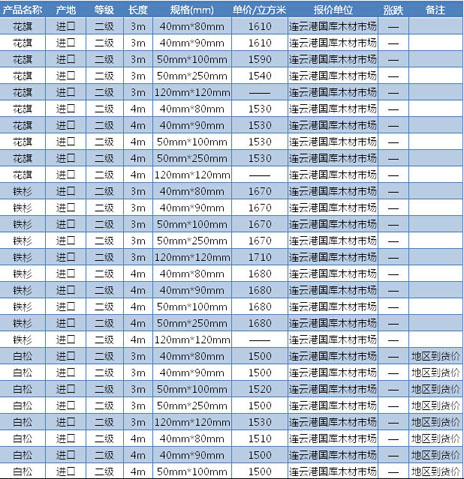 然相當看好。目前廣東市場北美花旗松長2—4m、A級加工統(tǒng)材報價1340元/立方米;南方松2—4m、A級加工統(tǒng)材報價1360元/立方米。