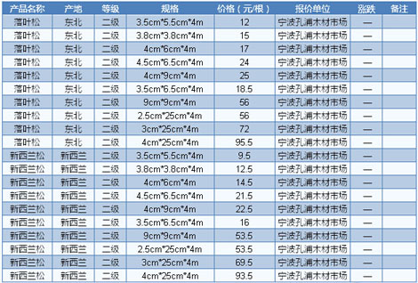 木材市場聯(lián)盟新動態(tài):近期,東北鋸材市場冷清不堪,行情弱勢整理。據(jù)商家反映,下游市場需求一片慘淡,大多數(shù)商家的庫存遲遲難以有效消耗,即使是降價出貨,尋貨問價者依然寥寥無幾。在眾多東北材品種當(dāng)中,松木類材種走勢相對較好,特別是用于基礎(chǔ)建筑方面的材料,市場依然能維持一定的出貨量。不過有商家反映,東北松木材種使用比較 集中的地區(qū)主要在北方地區(qū),如華北、東北、西北等地區(qū),而華南地區(qū)的需求量則相對較少,原因主要是華南地區(qū)距離較為遙遠(yuǎn),運(yùn)輸成本過大,導(dǎo)致東北松木缺乏 性價比。目前山東德州落葉松規(guī)格4m×6cm×12cm報價1700元/立方米。