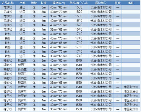 木材市場(chǎng)聯(lián)盟新動(dòng)態(tài):近期,因加拿大爆發(fā)森林大火,使得北美木材市場(chǎng)行情略顯震蕩,軟木方面表現(xiàn)得尤為明顯。據(jù)商家反映,受到多方面因素的影響,目前北美材的價(jià)格處于高位,且還有繼續(xù)上升的跡象。同時(shí),雖然國(guó)內(nèi)市場(chǎng)目前形勢(shì)略顯偏空,軟木的需求量較往年同期明顯萎縮,但畢竟剛性需求依然還在,國(guó)內(nèi)市場(chǎng)對(duì)北美軟木的需求量依然相當(dāng) 龐大,例如廣東市場(chǎng),每個(gè)月的需求量就已經(jīng)將近幾萬(wàn)個(gè)立方米,此外福建漳州等建筑模板廠家對(duì)北美軟木的需求量也不可小覷??梢钥闯?,北美軟木的后市行情仍 然相當(dāng)看好。目前廣東市場(chǎng)北美花旗松長(zhǎng)2—4m、A級(jí)加工統(tǒng)材報(bào)價(jià)1340元/立方米;南方松2—4m、A級(jí)加工統(tǒng)材報(bào)價(jià)1360元/立方米。