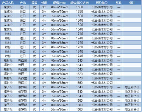 2016年6月17日長(zhǎng)治木材市場(chǎng)方木價(jià)格