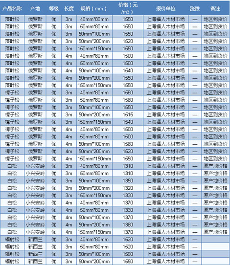 木材市場聯盟新動態(tài):近期,東北鋸材市場冷清不堪,行情弱勢整理。據商家反映,下游市場需求一片慘淡,大多數商家的庫存遲遲難以有效消耗,即使是降價出貨,尋貨問價者依然寥寥無幾。在眾多東北材品種當中,松木類材種走勢相對較好,特別是用于基礎建筑方面的材料,市場依然能維持一定的出貨量。不過有商家反映,東北松木材種使用比較 集中的地區(qū)主要在北方地區(qū),如華北、東北、西北等地區(qū),而華南地區(qū)的需求量則相對較少,原因主要是華南地區(qū)距離較為遙遠,運輸成本過大,導致東北松木缺乏 性價比。目前山東德州落葉松規(guī)格4m×6cm×12cm報價1700元/立方米。