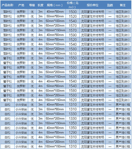 2016年6月23日沈陽(yáng)木材市場(chǎng)方木價(jià)格