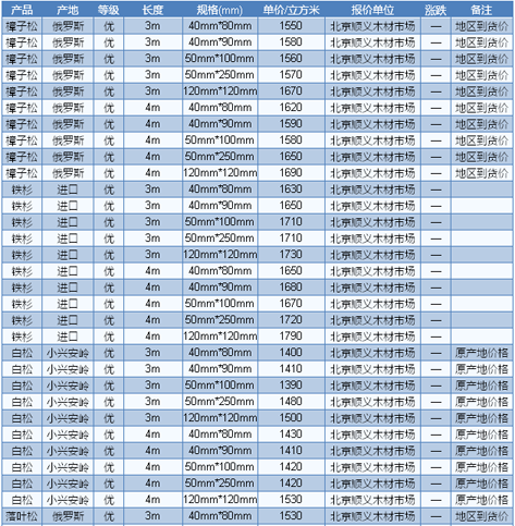 木材市場聯(lián)盟新動(dòng)態(tài):近期滿洲里口岸針葉材市場表現(xiàn)平穩(wěn),量價(jià)波動(dòng)甚少。目前滿洲里落葉松原木直徑28cm、長6m、產(chǎn)地伊爾庫報(bào)860元/立方米,直徑29cm、長6m、產(chǎn)地克市報(bào)930元/立方米,樟子松直徑24cm、長4m、產(chǎn)地布拉斯克報(bào)740元/立方米。