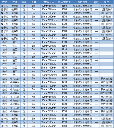 2016年6月28日北京木材市場方木價格