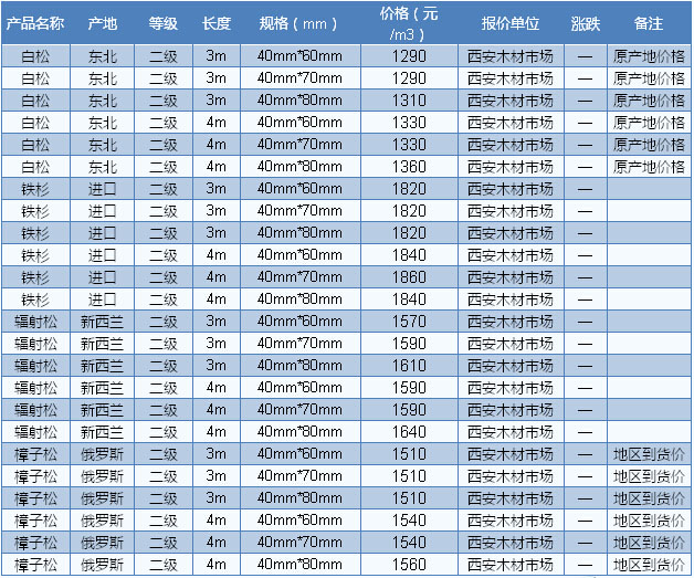 報860元/立方米,直徑29cm、長6m、產(chǎn)地克市報930元/立方米,樟子松直徑24cm、長4m、產(chǎn)地布拉斯克報740元/立方米。