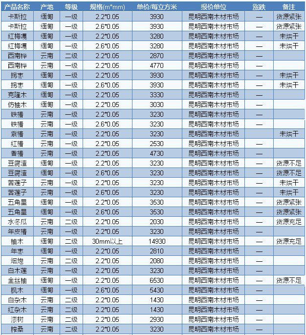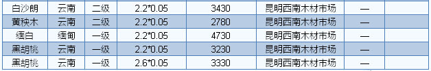 2016年7月1日昆明木材市場板材價格