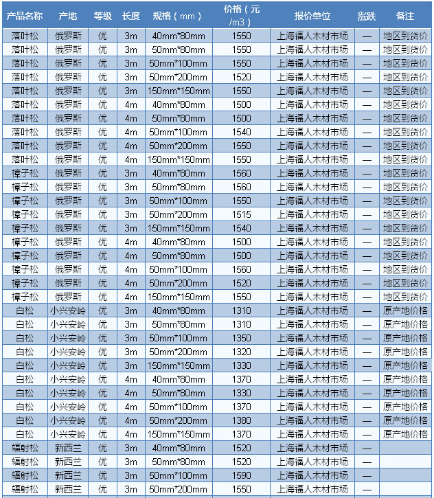 木材市場聯(lián)盟新動態(tài):近期,東北鋸材市場冷清不堪,行情弱勢整理。據(jù)商家反映,下游市場需求一片慘淡,大多數(shù)商家的庫存遲遲難以有效消耗,即使是降價出貨,尋貨問價者依然寥寥無幾。在眾多東北材品種當(dāng)中,松木類材種走勢相對較好,特別是用于基礎(chǔ)建筑方面的材料,市場依然能維持一定的出貨量。不過有商家反映,東北松木材種使用比較 集中的地區(qū)主要在北方地區(qū),如華北、東北、西北等地區(qū),而華南地區(qū)的需求量則相對較少,原因主要是華南地區(qū)距離較為遙遠(yuǎn),運(yùn)輸成本過大,導(dǎo)致東北松木缺乏 性價比。目前山東德州落葉松規(guī)格4m×6cm×12cm報價1700元/立方米。
