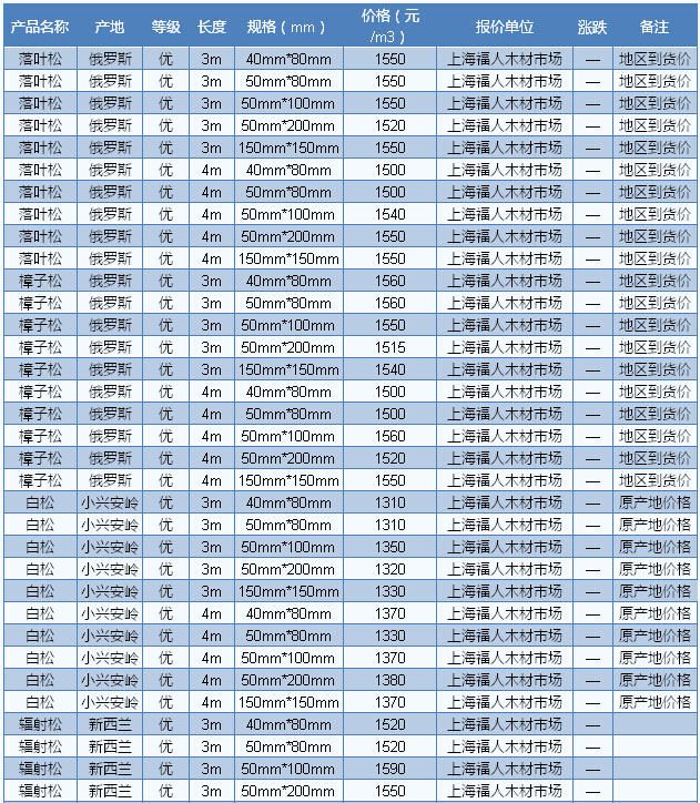 木材市場聯(lián)盟新動態(tài):近期,東北鋸材市場冷清不堪,行情弱勢整理。據(jù)商家反映,下游市場需求一片慘淡,大多數(shù)商家的庫存遲遲難以有效消耗,即使是降價出貨,尋貨問價者依然寥寥無幾。在眾多東北材品種當(dāng)中,松木類材種走勢相對較好,特別是用于基礎(chǔ)建筑方面的材料,市場依然能維持一定的出貨量。不過有商家反映,東北松木材種使用比較 集中的地區(qū)主要在北方地區(qū),如華北、東北、西北等地區(qū),而華南地區(qū)的需求量則相對較少,原因主要是華南地區(qū)距離較為遙遠(yuǎn),運輸成本過大,導(dǎo)致東北松木缺乏 性價比。目前山東德州落葉松規(guī)格4m×6cm×12cm報價1700元/立方米。