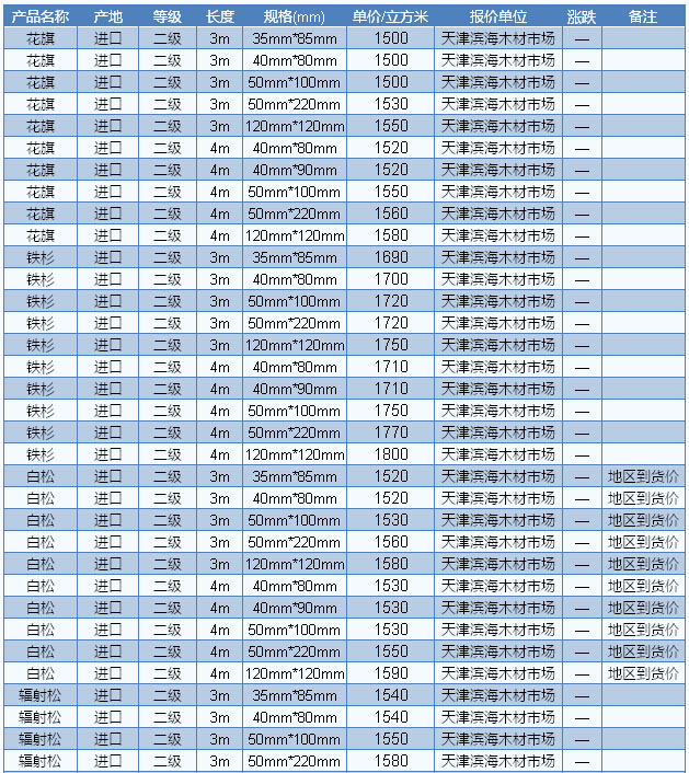 木材市場聯(lián)盟新動態(tài):近期,因加拿大爆發(fā)森林大火,使得北美木材市場行情略顯震蕩,軟木方面表現(xiàn)得尤為明顯。據(jù)商家反映,受到多方面因素的影響,目前北美材的價格處于高位,且還有繼續(xù)上升的跡象。同時,雖然國內(nèi)市場目前形勢略顯偏空,軟木的需求量較往年同期明顯萎縮,但畢竟剛性需求依然還在,國內(nèi)市場對北美軟木的需求量依然相當 龐大,例如廣東市場,每個月的需求量就已經(jīng)將近幾萬個立方米,此外福建漳州等建筑模板廠家對北美軟木的需求量也不可小覷??梢钥闯?,北美軟木的后市行情仍 然相當看好。目前廣東市場北美花旗松長2—4m、A級加工統(tǒng)材報價1340元/立方米;南方松2—4m、A級加工統(tǒng)材報價1360元/立方米。