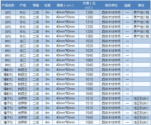 木材市場聯(lián)盟新動態(tài):從本周國內(nèi)木材市場俄羅斯木材價格走勢來看,由于當(dāng)前市場現(xiàn)貨庫存較足,目前價格暫未收到明顯波動。目前滿洲里落葉松原木直徑28cm、長6m、產(chǎn)地伊爾庫 報860元/立方米,直徑29cm、長6m、產(chǎn)地克市報930元/立方米,樟子松直徑24cm、長4m、產(chǎn)地布拉斯克報740元/立方米。