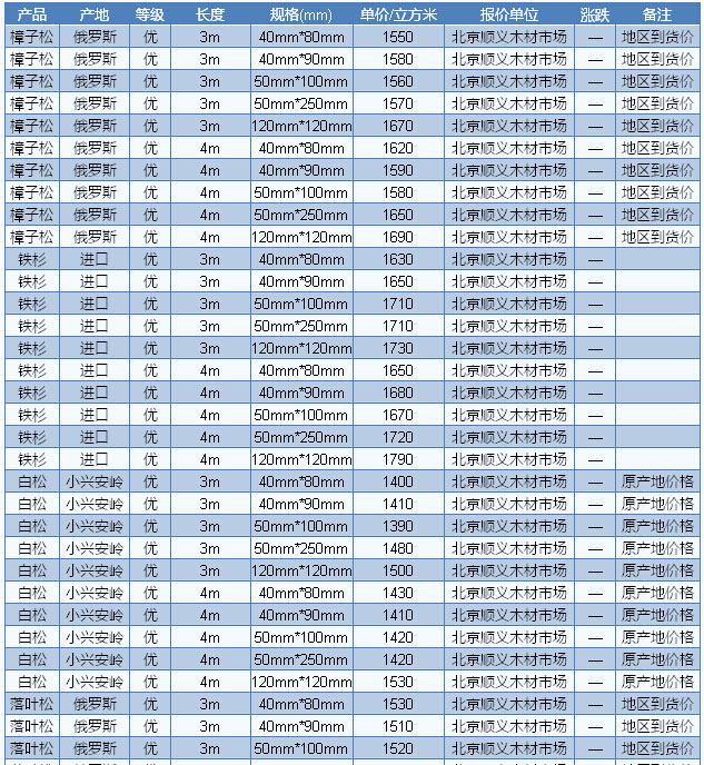2016年7月8日北京木材市場方木價格