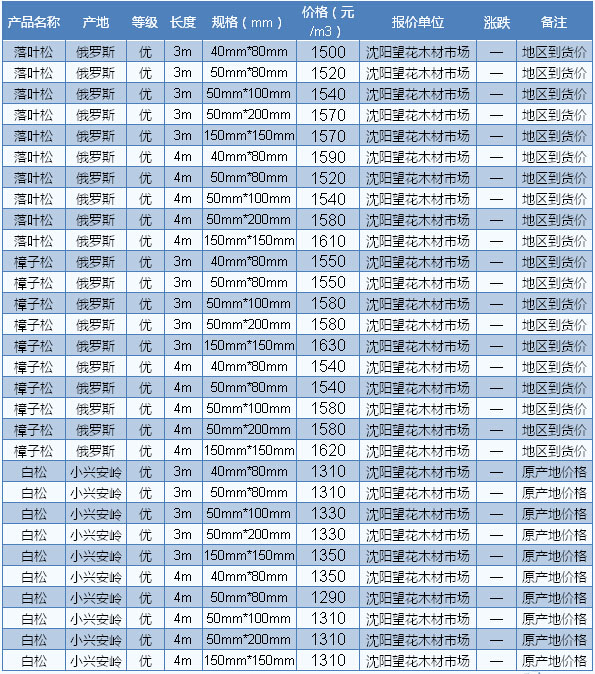 性價比。目前山東德州落葉松規(guī)格4m×6cm×12cm報價1700元/立方米。