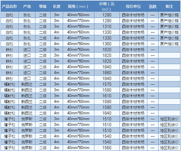 木材市場聯(lián)盟新動(dòng)態(tài):從本周國內(nèi)木材市場俄羅斯木材價(jià)格走勢(shì)來看,由于當(dāng)前市場現(xiàn)貨庫存較足,目前價(jià)格暫未收到明顯波動(dòng)。目前滿洲里落葉松原木直徑28cm、長6m、產(chǎn)地伊爾庫 報(bào)860元/立方米,直徑29cm、長6m、產(chǎn)地克市報(bào)930元/立方米,樟子松直徑24cm、長4m、產(chǎn)地布拉斯克報(bào)740元/立方米。