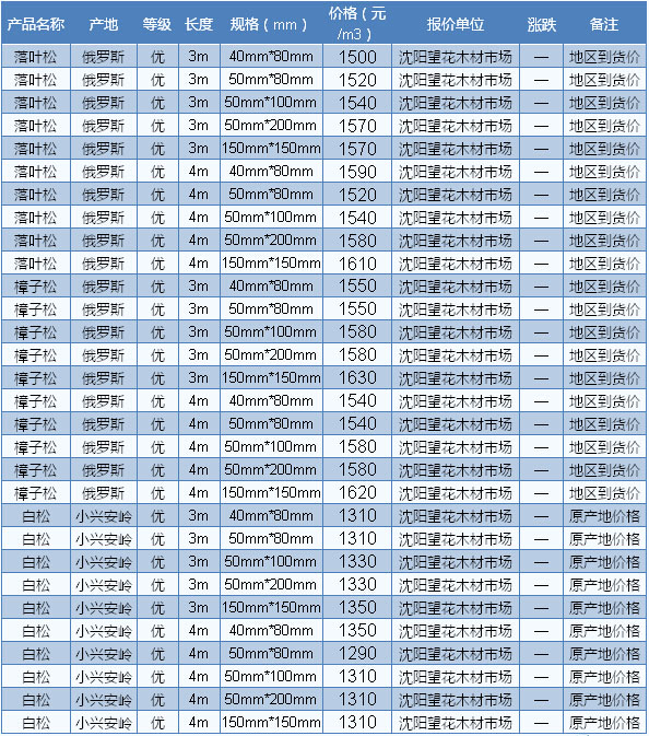 木材市場聯(lián)盟新動態(tài):近期,東北鋸材市場冷清不堪,行情弱勢整理。據(jù)商家反映,下游市場需求一片慘淡,大多數(shù)商家的庫存遲遲難以有效消耗,即使是降價出貨,尋貨問價者依然寥寥無幾。在眾多東北材品種當(dāng)中,松木類材種走勢相對較好,特別是用于基礎(chǔ)建筑方面的材料,市場依然能維持一定的出貨量。不過有商家反映,東北松木材種使用比較 集中的地區(qū)主要在北方地區(qū),如華北、東北、西北等地區(qū),而華南地區(qū)的需求量則相對較少,原因主要是華南地區(qū)距離較為遙遠(yuǎn),運(yùn)輸成本過大,導(dǎo)致東北松木缺乏 性價比。目前山東德州落葉松規(guī)格4m×6cm×12cm報價1700元/立方米。