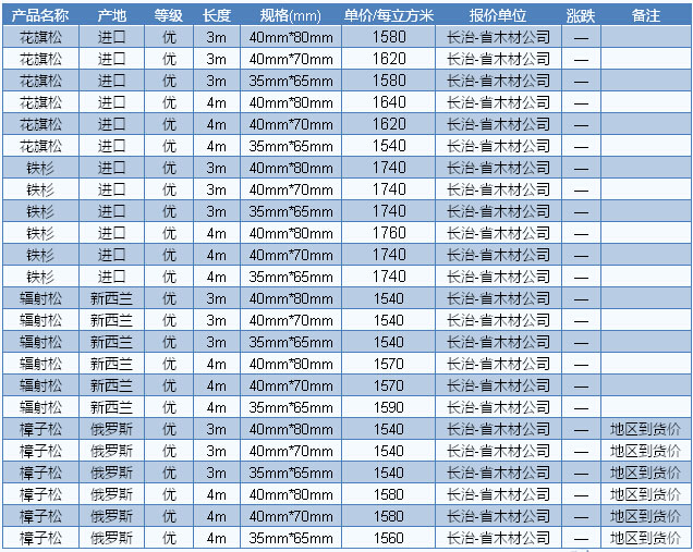 木材市場聯(lián)盟新動(dòng)態(tài):受到淡季的影響,東北俄羅斯木材市場交易較為冷清,行情持續(xù)低位平穩(wěn)。另外,商家表示上個(gè)月俄羅斯爆發(fā)森林大火,但對木材的供應(yīng)量并沒有造成明顯的影響,大部分材種價(jià)格也基本維持平穩(wěn),并沒有出現(xiàn)上漲,如樟子松,目前市場上樟子松的價(jià)格依然保持穩(wěn)定,長2—4m、厚5cm、統(tǒng)材報(bào)價(jià)為2100—2300元/ 立方米。其他材種如俄羅斯樺木,長2—4m、厚5cm、統(tǒng)材報(bào)價(jià)為2400—2600元/立方米。