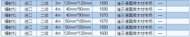 2016年7月14日連云港木材市場方木價格