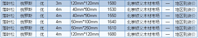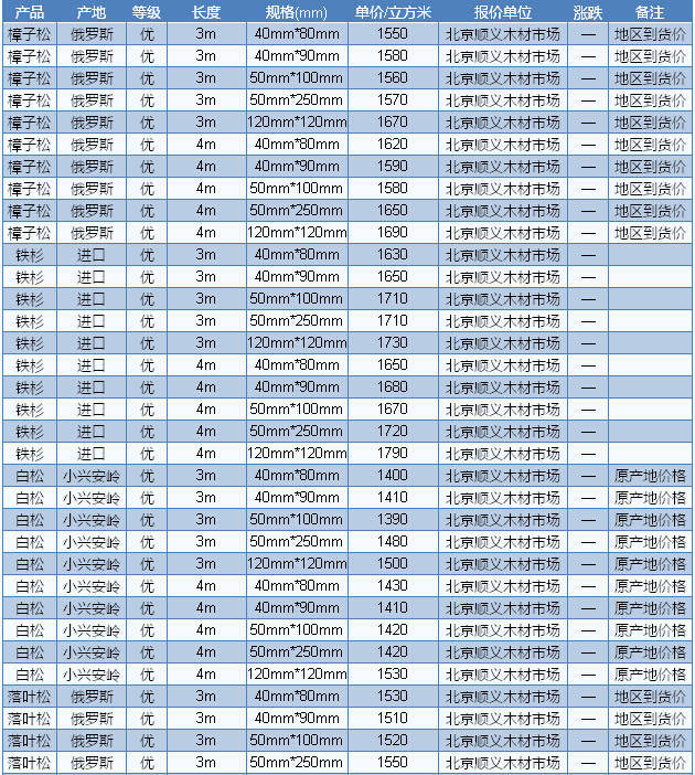 元/立方米,三等材680元/立方米;落葉松原木直徑14-20cm、一等材750元/立方米,一二等材720元/立方米,三等材680元/立方米;白松