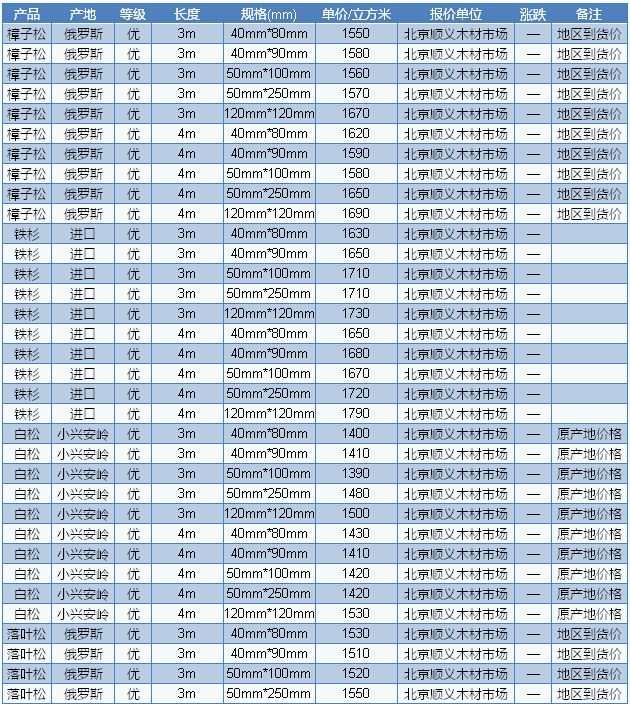 2016年7月15日北京木材市場方木價格