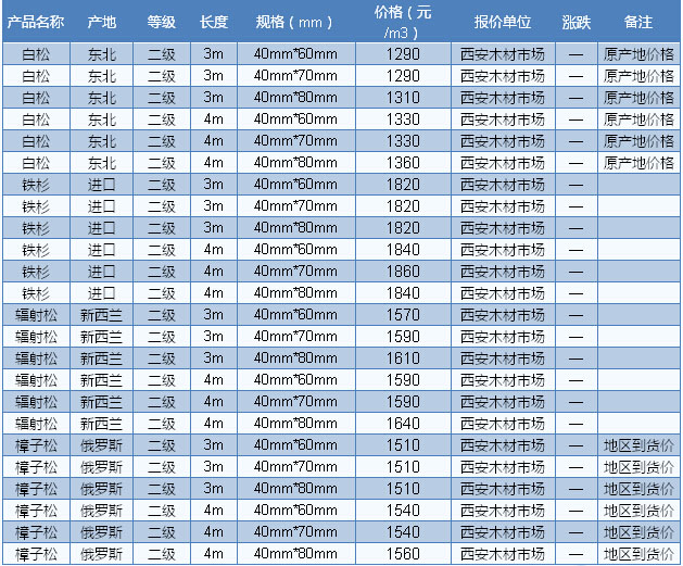 2016年7月15日西安木材市場方木價格