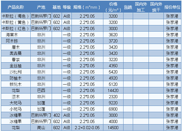 2016年7月19日張家港木材市場板材價(jià)格