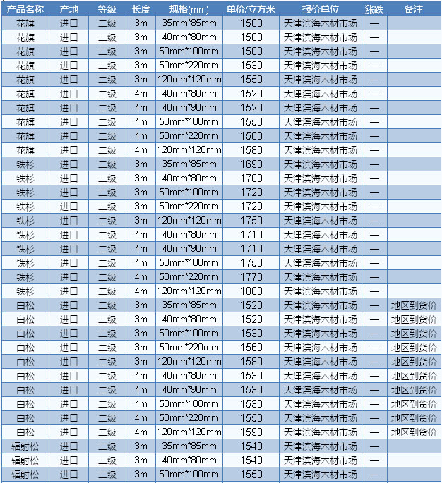 木材市場(chǎng)聯(lián)盟新動(dòng)態(tài):東北鋸材市場(chǎng)依然毫無(wú)亮點(diǎn)可言,行情持續(xù)處于低迷的態(tài)勢(shì)。有商家表示,目前國(guó)內(nèi)市場(chǎng)依然有著較大的東北材庫(kù)存,供應(yīng)下游市場(chǎng)基本沒(méi)什么問(wèn)題,只是下游市場(chǎng)需 求遲遲不見(jiàn)回暖,導(dǎo)致東北材行情一直疲軟不堪。目前廣東市場(chǎng)樺木長(zhǎng)2—4m、厚5cm、統(tǒng)材報(bào)價(jià)2300—2500元/立方米;白松長(zhǎng)2—4m、厚2.5 —9cm、統(tǒng)材報(bào)價(jià)1700—2000元/立方米。