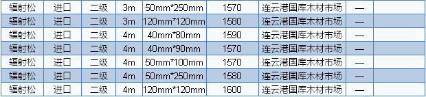 2016年7月21日連云港木材市場方木價格