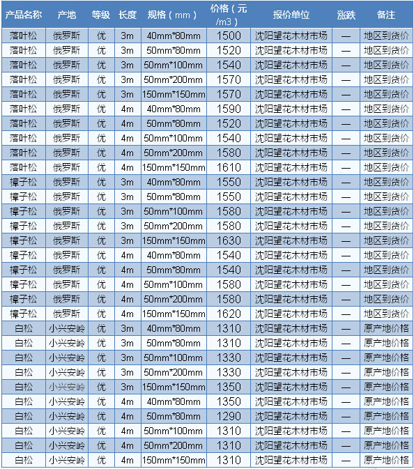 木材市場(chǎng)聯(lián)盟新動(dòng)態(tài):東北鋸材市場(chǎng)依然毫無(wú)亮點(diǎn)可言,行情持續(xù)處于低迷的態(tài)勢(shì)。有商家表示,目前國(guó)內(nèi)市場(chǎng)依然有著較大的東北材庫(kù)存,供應(yīng)下游市場(chǎng)基本沒(méi)什么問(wèn)題,只是下游市場(chǎng)需求遲遲不見(jiàn)回暖,導(dǎo)致東北材行情一直疲軟不堪。目前廣東市場(chǎng)樺木長(zhǎng)2—4m、厚5cm、統(tǒng)材報(bào)價(jià)2300—2500元/立方米;白松長(zhǎng)2—4m、厚2.5 —9cm、統(tǒng)材報(bào)價(jià)1700—2000元/立方米。