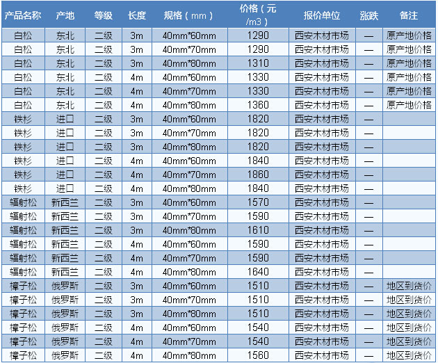 木材市場聯(lián)盟新動態(tài):受到人民幣貶值的影響,繼闊葉材價(jià)格的上漲之后,近段時間軟木的價(jià)格也開始逐步拉升。據(jù)商家反映,近期北美軟木建筑用材的價(jià)格普遍上漲20-30元/立方米左右。不過,在需求面上,商家表示目前正處于淡季時期,即使價(jià)格上漲了,但下游市場的需求量仍然十分冷清,行情整體偏淡。目前廣東市場美國黃松長2— 4m、A級統(tǒng)材加工報(bào)收1360元/立方米;美國鐵杉長2—4m、A級統(tǒng)材加工報(bào)收1340元/立方米;南方松長2—4m、A級統(tǒng)材加工報(bào)收1360元 /立方米。