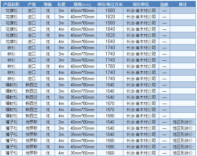 2016年7月28日長治木材市場方木價格