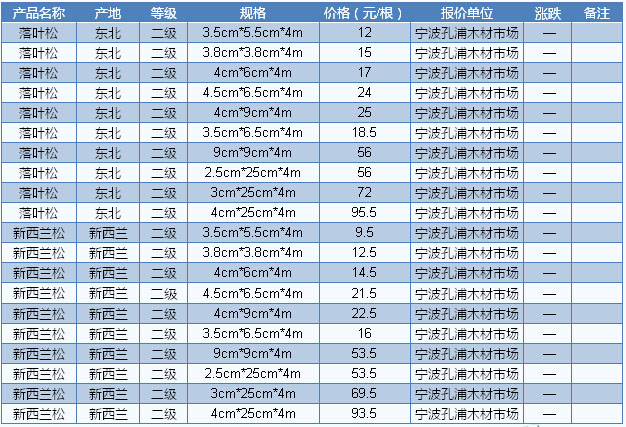 木材市場聯(lián)盟新動態(tài):7月份綏芬河口岸樟子松原木選材價格報900元/立方米,一二等材760元/立方米,三等材680元/立方米;落葉松原木選材830元/立方米,選材760 元/立方米,三等材680元/立方米;落葉松原木直徑14-20cm、一等材750元/立方米,一二等材720元/立方米,三等材680元/立方米;白松 原木一二等材760元/立方米、三等材710元/立方米。