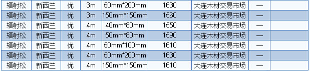 目前廣東木材市場白松長2—4m、厚2.5—9cm、統(tǒng)材報價1700—2000元/立方米、樟子松長2—4m、厚5cm、統(tǒng)材報價2100—2200元/立方米。