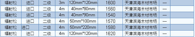 2016年8月9日天津木材市場方木價格
