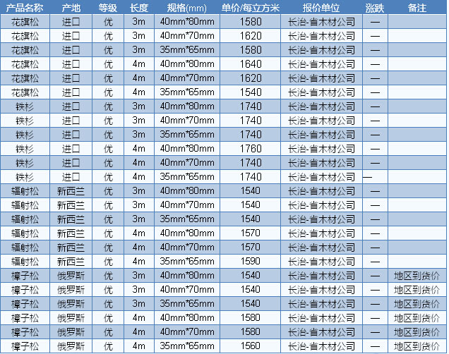 木材市場聯(lián)盟新動態(tài):近期,北美木材市場繼續(xù)維持平穩(wěn)的態(tài)勢,各種類品種出貨量較之前基本相當(dāng)。其中,軟木在戶外工程建設(shè)進(jìn)展緩慢的拖累下,市場成交量谷底徘徊。不過,經(jīng)銷商對 軟木的后市仍然較為看好,預(yù)計(jì)在進(jìn)入九月份之后軟木市場將會有不俗的表現(xiàn)。目前廣東市場美國黃松長2—4m、A級統(tǒng)材加工報(bào)價1360元/立方米;北美花 旗松長2—4m、A級統(tǒng)材加工報(bào)價1340元/立方米。