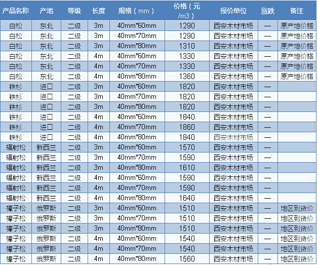 2016年8月11日西安木材市場方木價格
