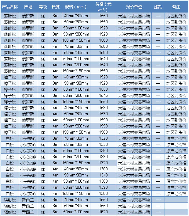 2016年8月11日大連木材市場(chǎng)方木價(jià)格