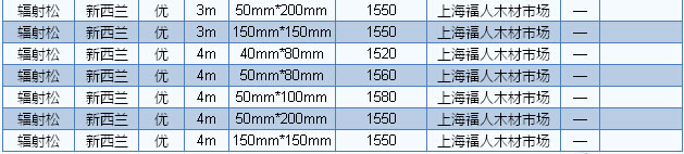 目前廣東木材市場(chǎng)白松長2—4m、厚2.5—9cm、統(tǒng)材報(bào)價(jià)1700—2000元/立方米、樟子松長2—4m、厚5cm、統(tǒng)材報(bào)價(jià)2100—2200元/立方米。