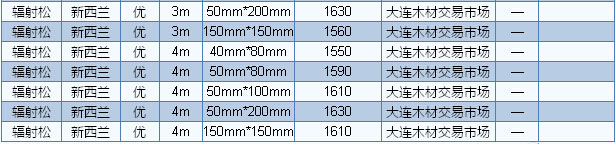 目前廣東木材市場白松長2—4m、厚2.5—9cm、統(tǒng)材報價1700—2000元/立方米、樟子松長2—4m、厚5cm、統(tǒng)材報價2100—2200元/立方米。