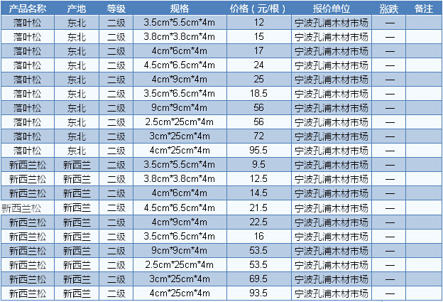 目前廣東木材市場白松長2—4m、厚2.5—9cm、統(tǒng)材報價1700—2000元/立方米、樟子松長2—4m、厚5cm、統(tǒng)材報價2100—2200元/立方米。