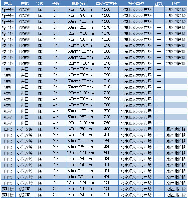 2016年9月1日北京木材市場(chǎng)方木價(jià)格