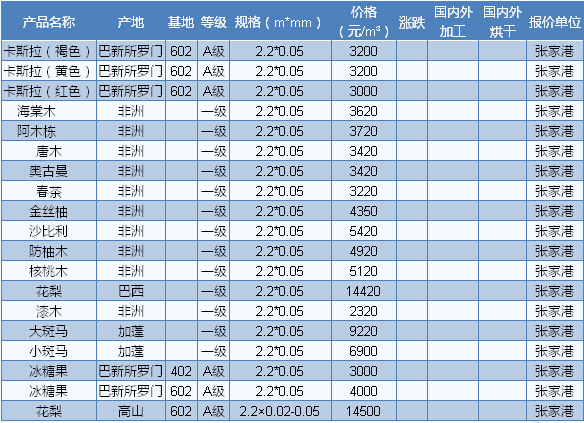 木材市場聯(lián)盟新動態(tài):東非黑黃檀方面,據(jù)調(diào)查了解,雖然市場走貨量十分有限,但木材商依舊在不斷推廣宣傳,希望能盡快的清庫存。目前張家港東非黑黃檀直徑40-50cm左右報價6700元/噸,有近千噸的現(xiàn)貨需處理。